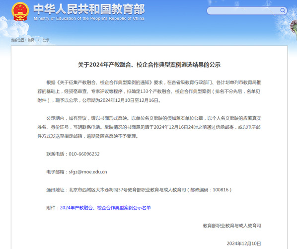 安庆职业技术学院产教融合校企合作案例入选教育部2024...